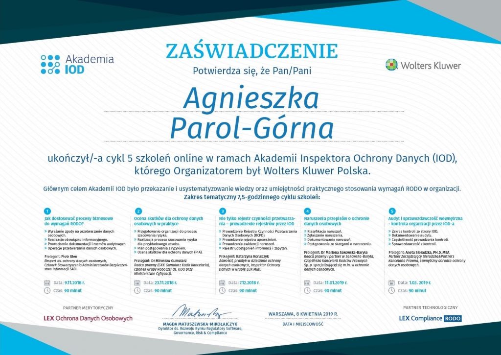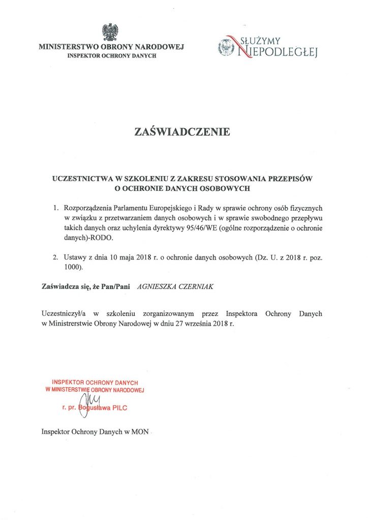 Gwarantujemy zgodność z obowiązującymi przepisami.